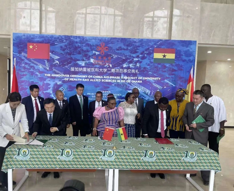2024年7月29日,援加納霍城醫科大學二期項目交接儀式在加納沃爾特省首府霍城隆重舉行。加納總統阿庫福-阿多、衛生部部長博納德、教育部副部長約翰、沃爾特省省長萊特薩,中國駐加納使館臨時代辦李旸等出席儀式。
